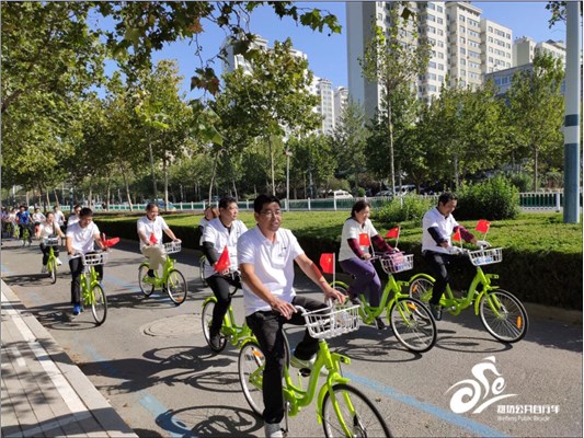 為倡導綠色文明出行,傳播“低碳生活、綠色出行、文明出行”的生活理念,提升市民參與環(huán)保行動的積極性,進一步促進城市生態(tài)和諧發(fā)展,9月22日由濰坊市城市管理局、濰坊市市政公用事業(yè)服務中心主辦,常州永安公共自行車運營有限公司濰坊分公司承辦的2019年“世界無車日”慶祝新中國成立70周年騎行活動暨第三代公共自行車投放儀式在人民廣場成功舉辦,共計150余位熱心市民參加了本次主題騎行活動,并集體合唱《歌唱祖國》和《義勇軍進行曲》,慶祝新中國成立70周年。