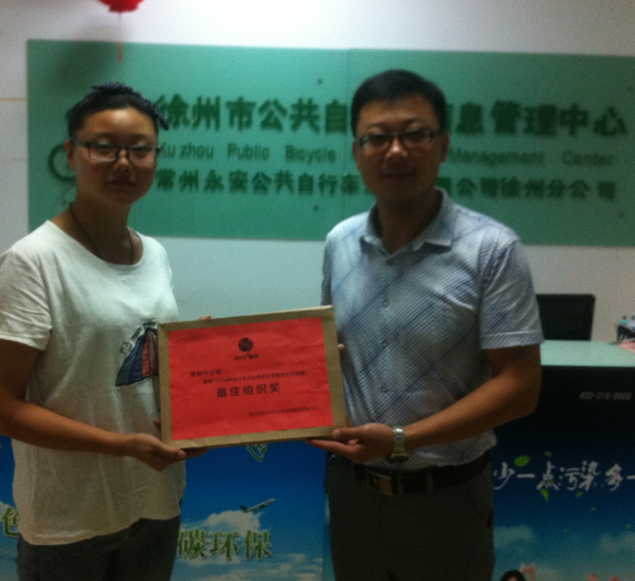 徐州公共自行車(chē)管理中心組織的一年一度地球日活動(dòng),在公司全體員工的共同努力以及徐州市民的支持下,徐州公共自行車(chē)獲得了“最佳組織獎(jiǎng)”的殊榮。