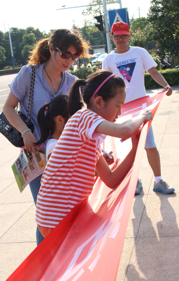 當(dāng)日下午3時(shí),實(shí)踐小隊(duì)騎著由永安公司提供的綠色公共自行車從河海大學(xué)北門出發(fā),途經(jīng)紫荊公園、中華恐龍園、新北萬達(dá)廣場(chǎng)。期間實(shí)踐小隊(duì),進(jìn)行了發(fā)放宣傳單、百人簽名等活動(dòng),截止晚上8點(diǎn),活動(dòng)圓滿結(jié)束。