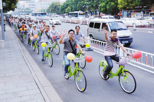 9月22日是“中國城市無車日”,恰逢我市公共自行車運(yùn)行三周年。當(dāng)日,我市近百市民集體騎行公共自行車,倡導(dǎo)綠色出行方式,傳達(dá)低碳環(huán)保理念。 同日,我市舉行純電動公交車投放儀式。截至目前,我市已經(jīng)投放180臺純電動公交車在2路、75路、46路、71路、38路、206路、607路等線路上運(yùn)行,年底前還將投入165臺,總數(shù)將達(dá)到345臺。本報記者 孫井賢 仲冬竹 攝 |
