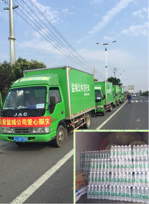 在天災(zāi)面前,我們顯得那么渺小和無力,在抗災(zāi)救災(zāi)時,我們愛心力量大,我們一直與阜寧、射陽同在。鹽城公共自行車中心發(fā)起愛心捐贈,用善款購買了礦泉水、方便面、油布、被褥、床席、蚊香等救災(zāi)物資,送往災(zāi)區(qū),給受災(zāi)群眾送去溫暖,用實際行動援助災(zāi)區(qū)的兄弟姐妹。