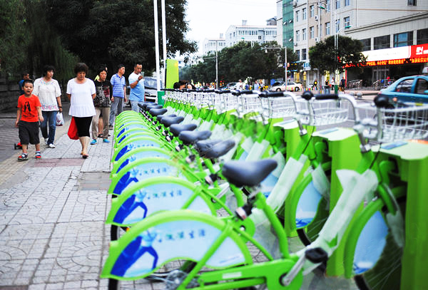 8月15日,多個(gè)公共自行車服務(wù)點(diǎn)“亮相”橋東區(qū),綠白相間的自行車整齊排列,引來(lái)不少市民關(guān)注。目前,公共自行車系統(tǒng)正在調(diào)試中,待調(diào)試完成便可以投入使用。