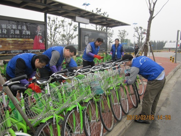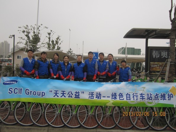 在活動(dòng)現(xiàn)場有些自行車需要調(diào)整零件的,懂自行車維護(hù)的同志就自告奮勇的站出來擔(dān)當(dāng)這個(gè)任務(wù),有些自行車需要清潔工作的,就拿起抹布認(rèn)真仔細(xì)地擦試,不一會兒工夫一個(gè)又一個(gè)站點(diǎn)在他們熟練的動(dòng)作中形成一道道美麗的風(fēng)景線。三星顯示器有限公司率先從自身做起,將環(huán)保理念深入員工帶動(dòng)市民,以實(shí)際行動(dòng)支持環(huán)保事業(yè)。