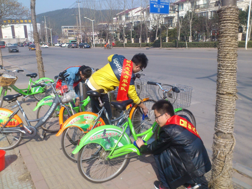 信電學(xué)院11級22班在徐州市新風(fēng)志愿者服務(wù)總隊礦大南湖中隊指導(dǎo)下開展了“徐州市公共自行車維護(hù)綠色行”志愿服務(wù)活動,彰顯了同學(xué)們的綠色中國夢想。